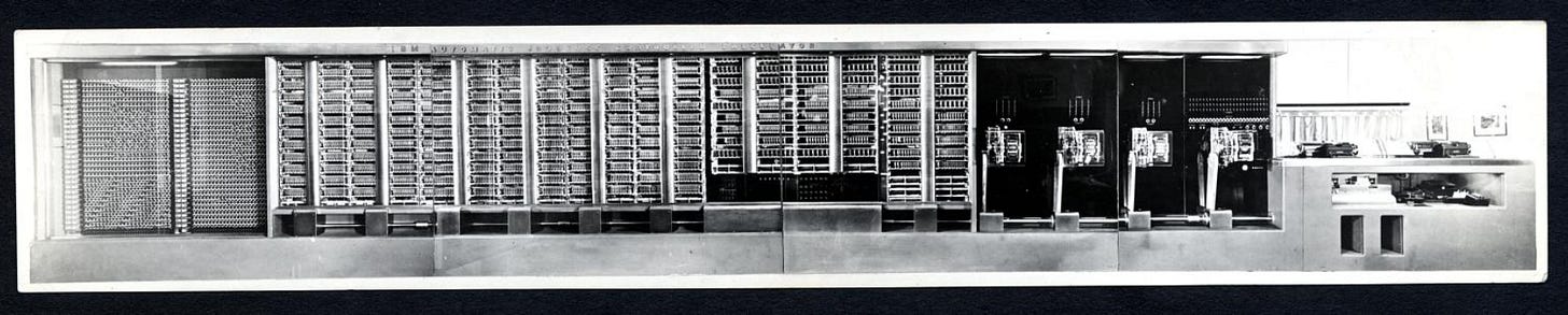 The computer had no manual, no organization. It was a behemoth of metal, wires, and clunky relays. 8 feet high and 51 feet long, with 530 miles of internal wiring connecting its relays. Weighing almost five tons and featured 750,000 moving parts.